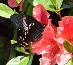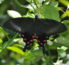 | ▲♀(ヒラドツツジの花で吸蜜)大宜味村 2010年2月28日 | ▲▲♂(アフリカホウセンカの花で吸蜜)大宜味村(宮城島、未発表)2010年5月2日 | ▲♂(クマタケランの花で吸蜜)大宜味村六田原 2011年6月8日 | ▲♂(シロオビアゲハ♂とともにセンダングサ類で吸蜜)本部町 2011年10月19日 |