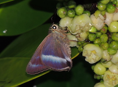 | ▲1頭(ビワの花で吸蜜)本部町 2012年11月20日(新田敦子) | ▲♂(フクギ(福木)の花で吸蜜)うるま市 2016年5月11日 | ▲1頭(エゴの花で吸蜜)東村 2025年2月25日(新田敦子) | ▲交尾(上♀・下♂)うるま市 2008年10月7日 |