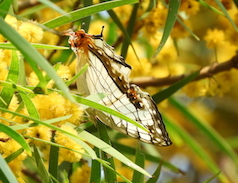 | ▲♂(ニトベカズラの花で吸蜜)本部町 2005年7月30日 | ▲1頭(ツルヒヨドリの花で吸蜜)宜野座村 2022年11月20日(新田敦子) | ▲1頭(ソウシジュの花で吸蜜)国頭村 2024年5月6日(新田敦子) |