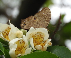 | ▲1頭(ゲットウの萎れた花で吸蜜)国頭村 2024年6月21日(新田敦子) | ▲1頭(イジュの花で吸蜜)国頭村 2024年5月6日(新田敦子) |